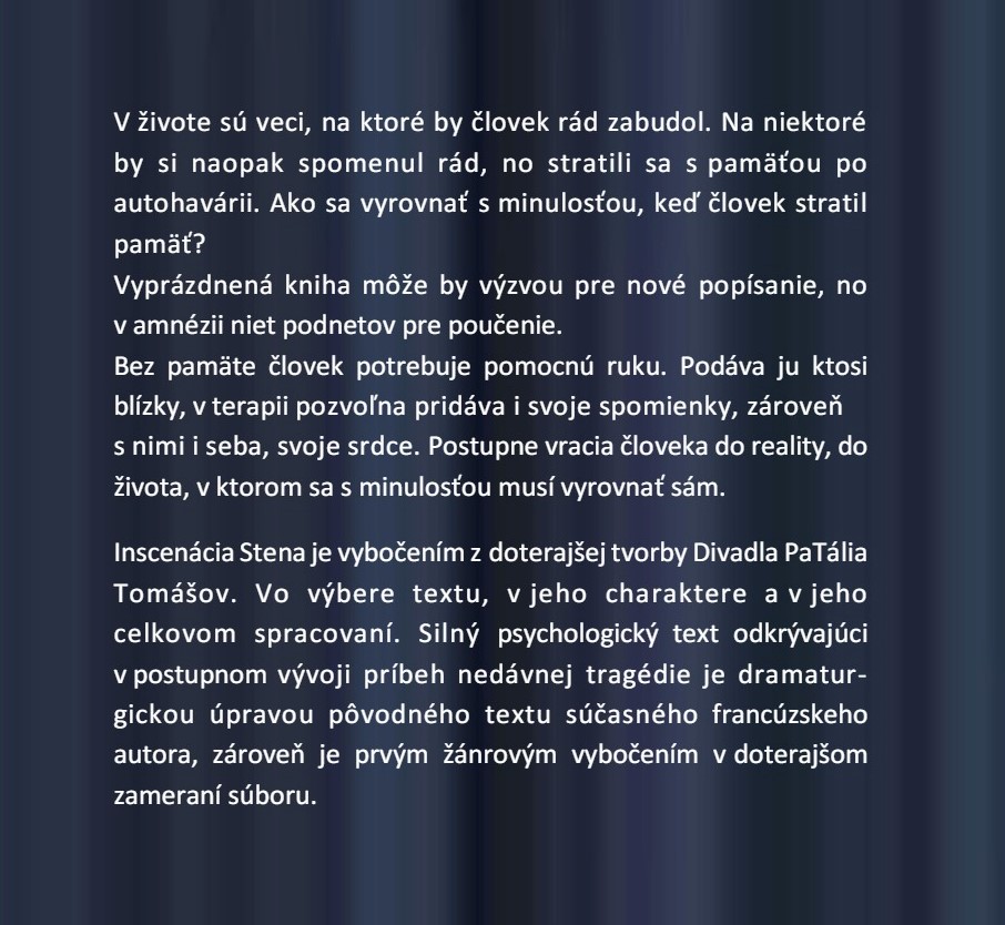 Divadelné predstavenie STENA v podaní Divadla Patália Tomášov