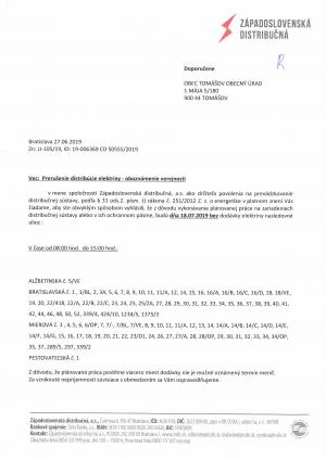 Obec Tomášov ďakuje za poskytnutú podporu.